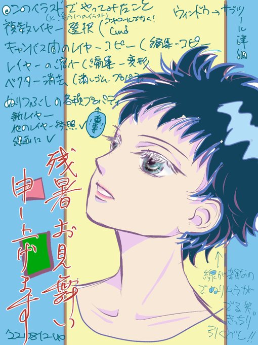 クリスタ初心者操作雑記録📝 盆休みからの5日間勤務、やっと週末…長かった…🤗教本と古iPadみながら、いろいろふるまい確認や操作練習などちょこちょこと😄#落書きギルド #イラスト練習中