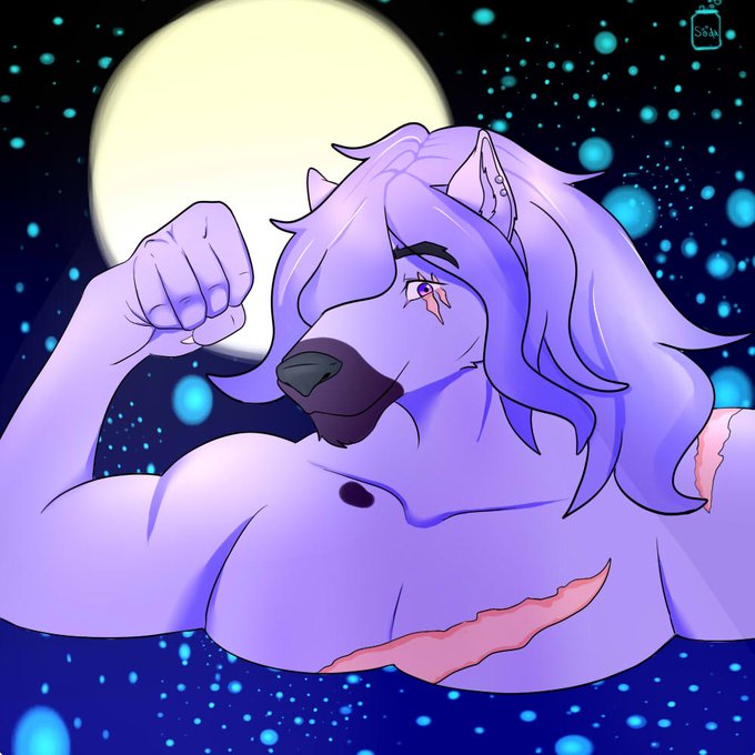 #furryartwork #furryfandom #wolf #moon #flexing #trade #furry #anthro #SodaRain