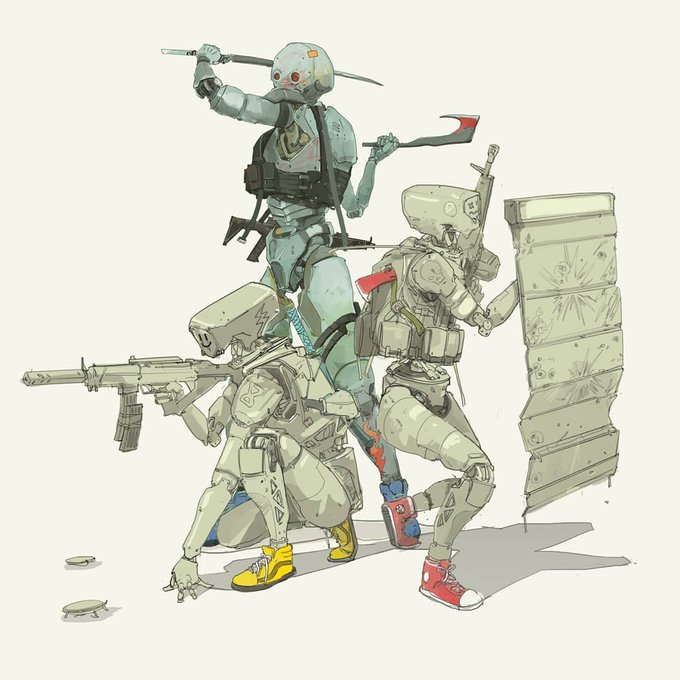 Got an idea after i saw a picture from 1952, an odd invention called Gas-Powered Car Shoes. So I think it will fit with cyberpunk-postapocalyptic concept. Ah dunno... #sketches #conceptart