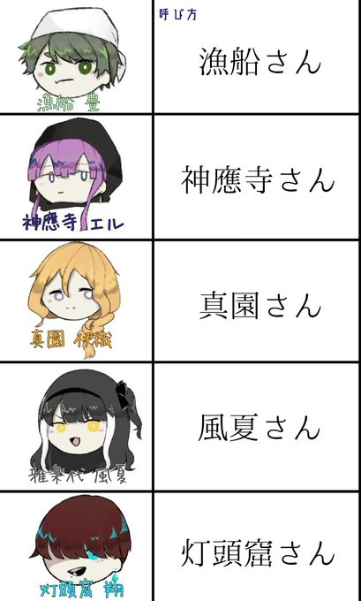 @shinfuti_ronpa 呼び方しかまとめてないのでタグは控えますがこんな感じです! 基本さん付け