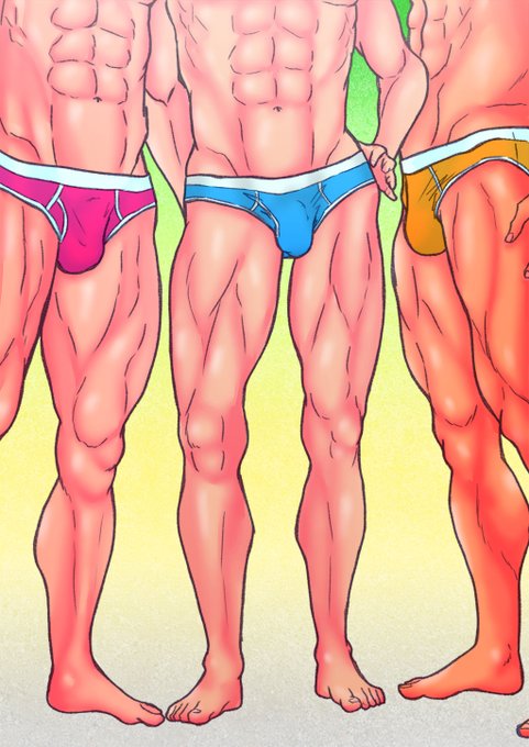 今描いているイラスト、下塗りまでできました。途中経過です。今回はメンズビキニ系でいきますよ~。