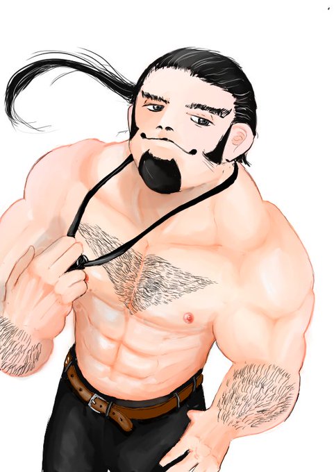 黒髪ロングでスーツが似合う胸チラ系ムチムチお兄さん #イラスト