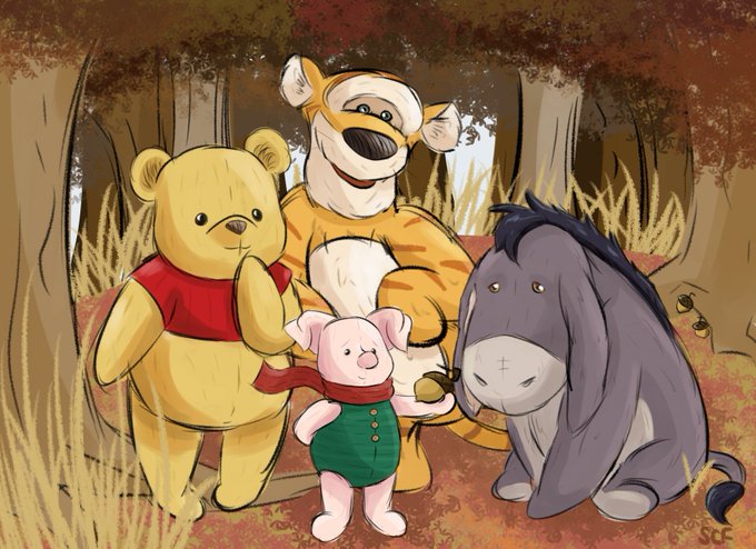 I watched #ChristopherRobin yesterday, and loved it! So I drew Pooh and friends, even though the style is much more different than my usual one.