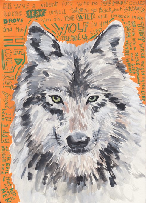 Today's portrait. White Fang. Gouache painting and @poscauk pens. A good time to reflect on how we are shaped by our environment. #whitefang #paintingportraits #jacklondon