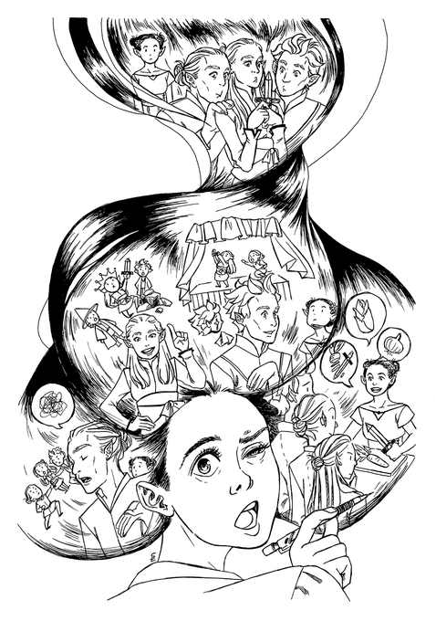 @sprankadoodlez Thank you for doing this! I mostly do comic art in inks, watercolors and gouache and actually finished publishing a mini-comic on my blog recently. I as you can see I love doing facial expressions and surreal hairthe most. Nice to meet all of you! 😊