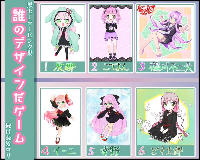 ごはん氏【hkhk_raisu】主催の黒セーラーピンク髪緑目長髪ロリ誰デザゲームに参加させていただきました!💝