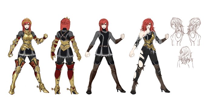 This is the concept art of Hilde. The design is based on the image of a brave princess and warrior of a kingdom. The wolf and lily-of-the-valley, which are also used in the emblem of the kingdom, are used as motifs. (1/2)