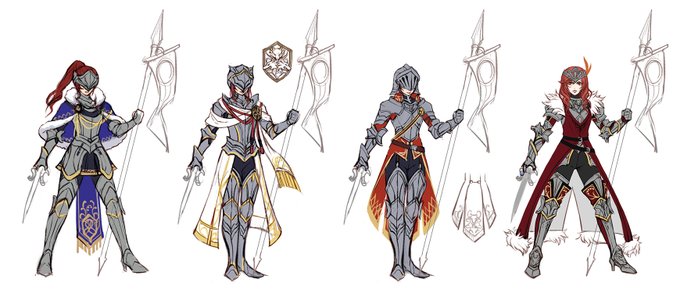 ヒルダのコンセプトアートです。一国の姫であり戦士でもある勇ましい姿、気高くも美しい鎧騎士をイメージしたデザインです。