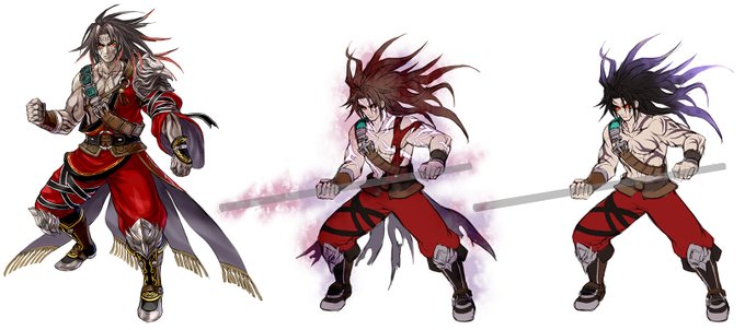 (2/2) In the rough draft stage, we tried to keep elements of the previous designs, while still trying to create a style most appropriate for Kilik when he was equipped with the Dvapara-Yuga. In this game, the change to Malfested was a new visual challenge for us.