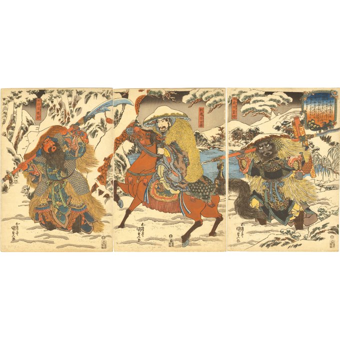Scene in which Liu Bei visits Kongming in the snow. Although Hongming was a person of little renown at the time, Liu Bei was finally able to invite him by visiting him three times and paying his respects.