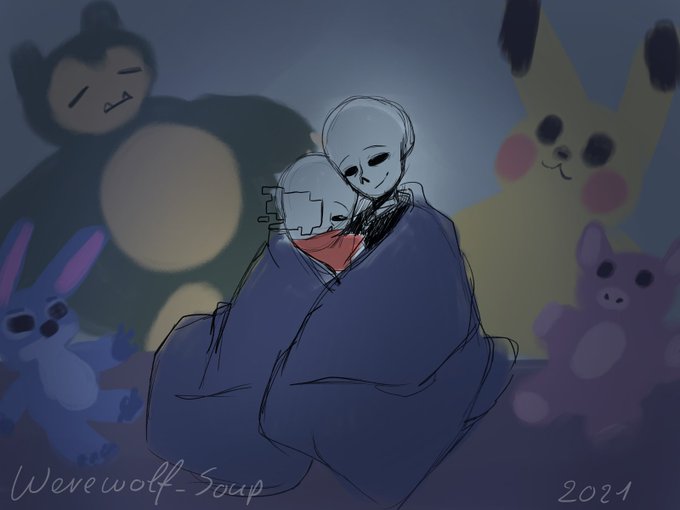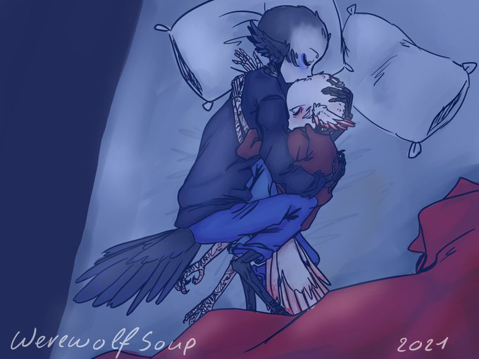 "Sleep" - Nov. 27 [After drawing this I seriously want to sleep. Anyways it's harpie Reaper and Geno sleeping together] #reapember2021 #afterdeath