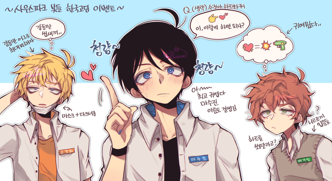 사팍봇들 한국고딩AU 넘무 귀엽고.. 이벤트 하시느라 고생많으셨습니다(뒷북) 마수진 세상 청량하고 텍스트만 봐도 넘 잘생김,,