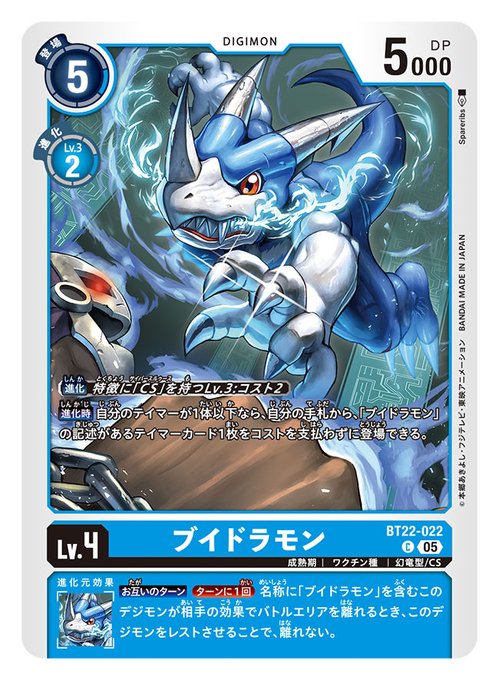 同じく本日発売のデジモンカードゲーム ブースターパック『CYBER EDEN』にて「ブイモン」、「ブイドラモン」、「エアロブイドラモン」、「アルフォースブイドラモンACE」のイラストを描かせていただきました!