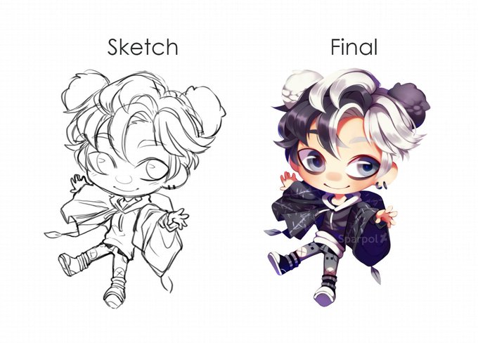 Aquí les dejo el habitual Inicio vs Final chicos, normalmente suelo limpiar directo desde el sketch, pero en esta ocasión le hice un lineart muy finito debido a que tenia muchos detalles.