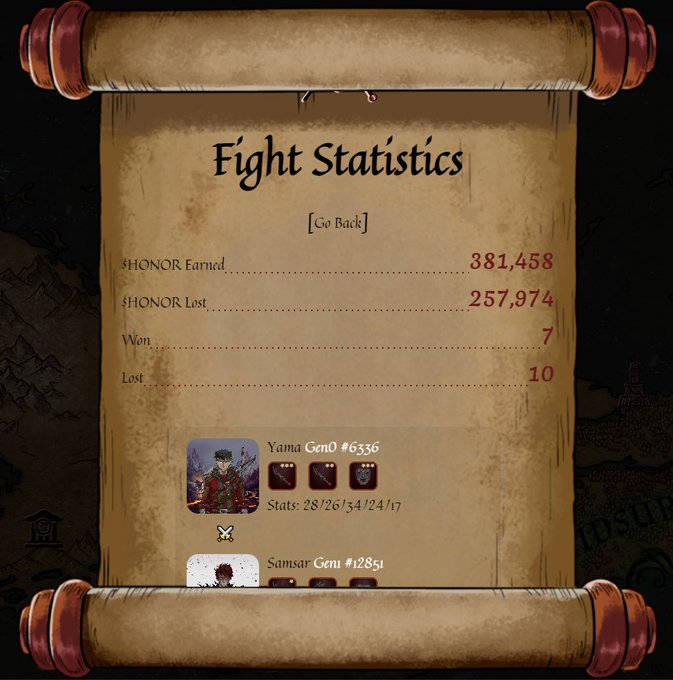 @ShadowQuest_NFT Solids results for this #SQFridayFightNight. Used the winnings to re-roll health for this Samurai Samsar. Glad to see the SQ team keep building!