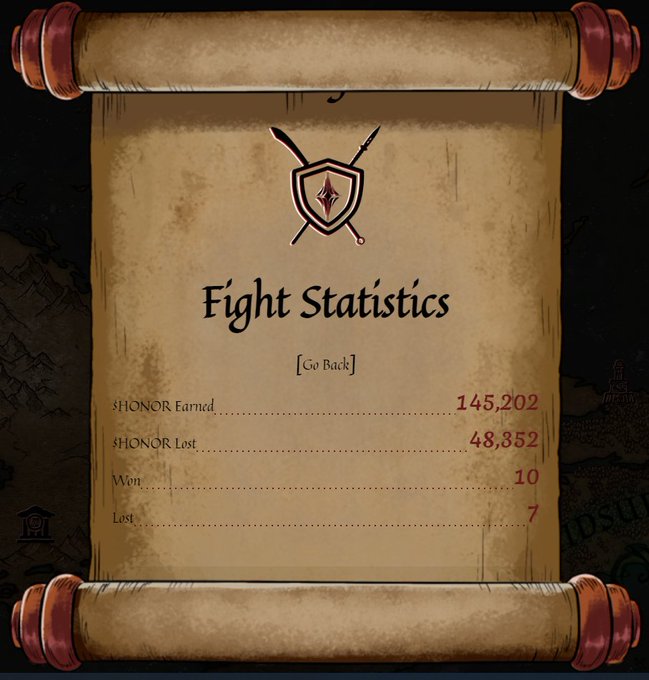 @ShadowQuest_NFT After 28 days on the battlefield, over 1.6 million $HONOR was on the line tonight... Pretty happy to win 9 out of 16 battles (1.78M $HONOR won)! Still have my Samsar collecting taxes daily including this king from mint. LFG!