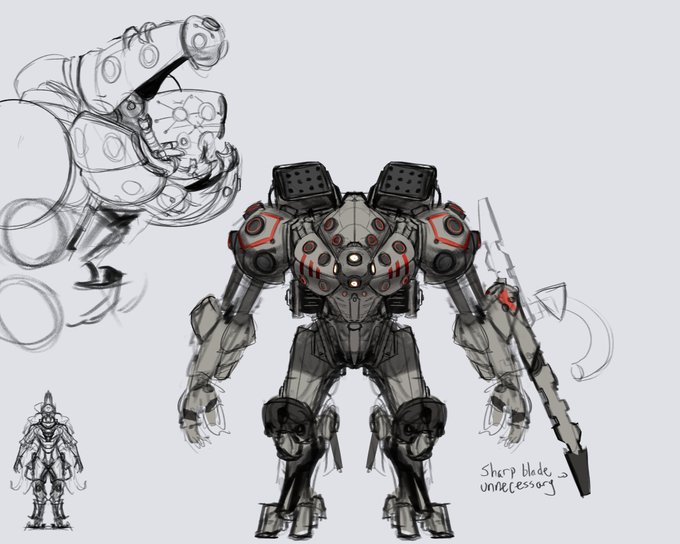 Haven't been able to do much personal art lately, been sketching some ideas for a robot though.
