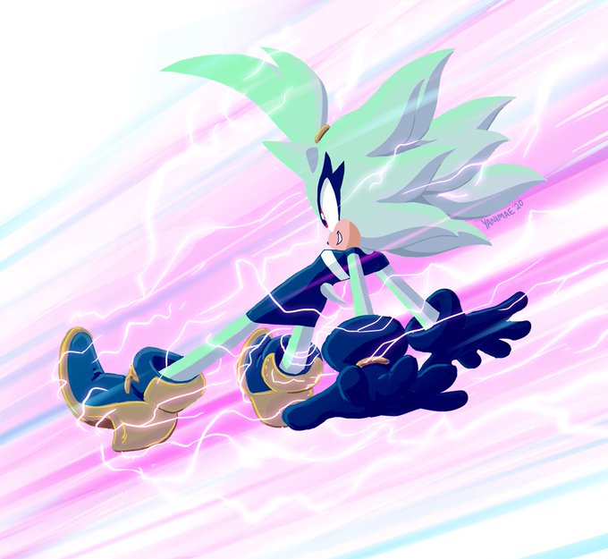 Whew! Finally done! A gift for @KitsuneKittenz since she was so kind as to illustrate a beautiful piece of our green sparky gals. ⚡️💚🦔