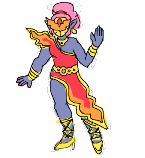 here's an oc i designed for a transformers discord i'm in, it's tatsuko kouyagi, also known as the Remix Princess of the Soumen Era, Kamen Rider Tak-Ojo!