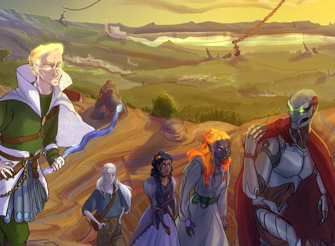 This order was an absolute blast to work on, it was fun to hear about the party & their individual adventures. I love scenes like this and wanted to channel the load-screen RPG vibes. Characters not mine.