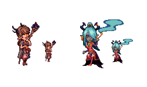 Deer Lady & Demon Lady - OC for @Mafubash and @manreeree #pixelart commission