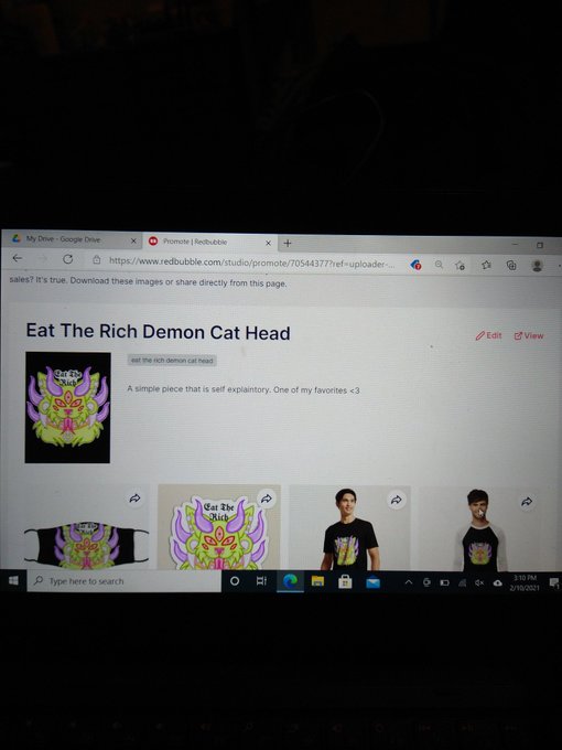 My "Eat The Rich" demon cat head design is now up on my redbubble shop!! Details in my link tree!!!