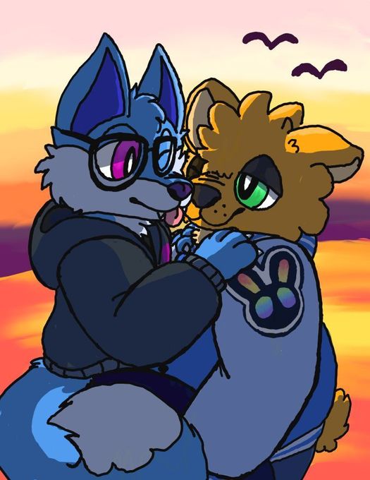 Enjoy art of my Fursona being gay with my boyfriends Fursona. Art by