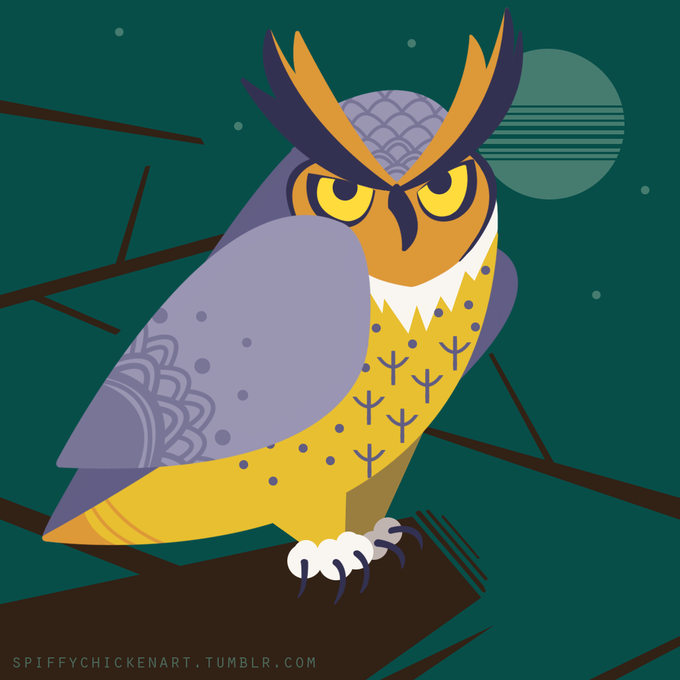 Something inspired by a neat horned owl I saw today as well as a Charley Harper art exhibit!