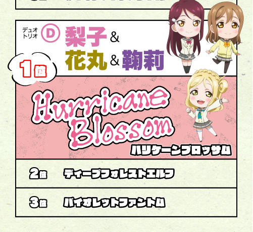 ちかなんがトワイライトタイガーで、くさおるりこがハリケーンブロッサム