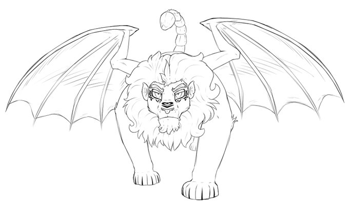Meanwhile, here are some doodles from January that I have completely forgotten about, of that manticore I had designed.