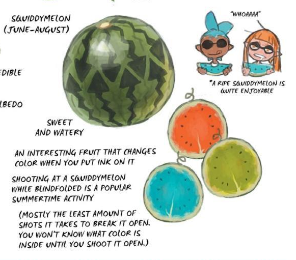 There is actually quite alot more fruits that can be seen here that we almost never see in game on this page in the Splatoon 2 Artbook! https://t.co/D9yZp41fvp