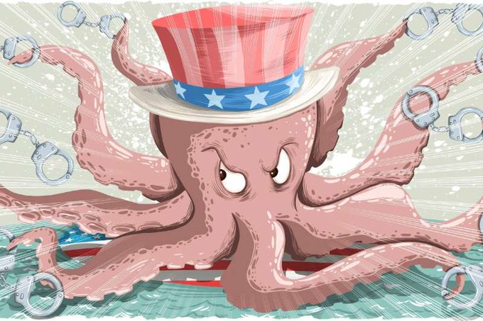 The #US' arm is sooooooooo long that it extends far and beyond to snare foreign companies carrying out normal activities on their own territory! Its octopus-like long arms should first snatch its fighter jets and warships out of other country's doorstep!