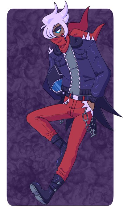 A biker Darkrai gijinka for @Lewd_cifer ! The biker aesthetic and Darkrai are two great things that go EVEN BETTER together!