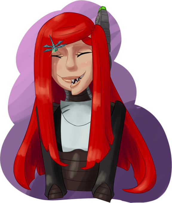I drew @NikiNazu 's monstrous, cutie android, Morello, wearing a gifted hair clip.