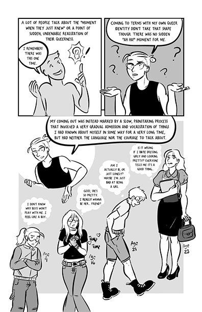I'm Spratty, a trans non binary cartoonist, and I make comics mostly about gender and polyamory, albeit with in lots of different settings