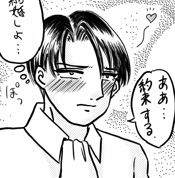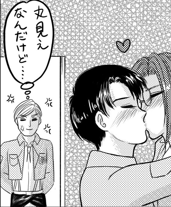 私の描く兵長はすぐ赤面するどころか、普段は目付き悪いのにハンジさんとキスする時はかなり優しい顔に変わっています。