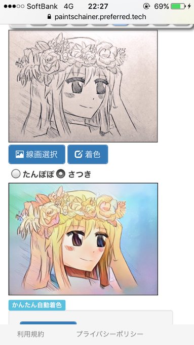自動着色にさつきというのがあったので試したらすごく鮮やかに仕上げてくれて感激。゚(゚^ω^゚)゚。