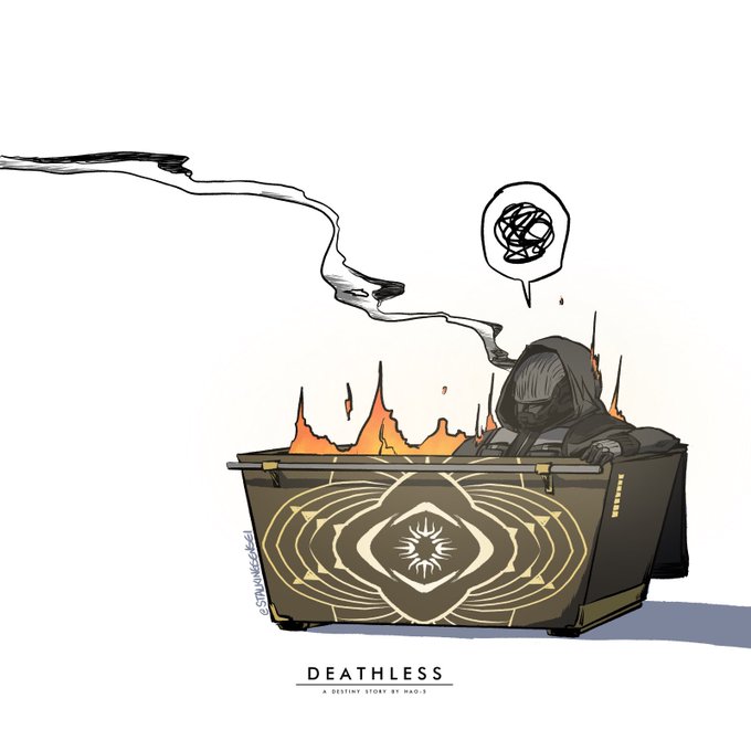 Artist’s self portrait of himself solo queueing in the Flawless pool🔥 @bungie @DestinyTheGame #DeathlessManga #DestinyArt
