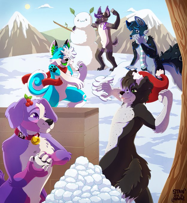 Grosse commande d'une bande de copains profitant du soleil pour faire une bataille de boules de neige.