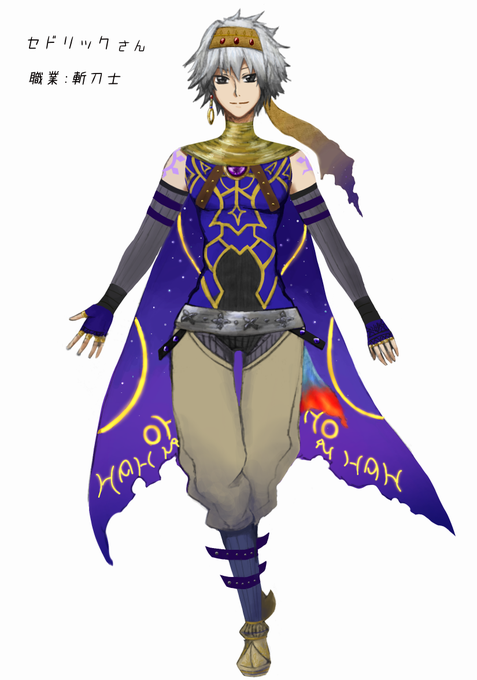 王族、貴族等をイメージし豪華な感じにしました。セドさんは銀髪で青、紫色っぽいなーと思ってこんな感じの色味に。ギルマスの強そうな感じを表現したつもりです。マントは天体の様な模様で、その輝き、色は不思議に変化します。