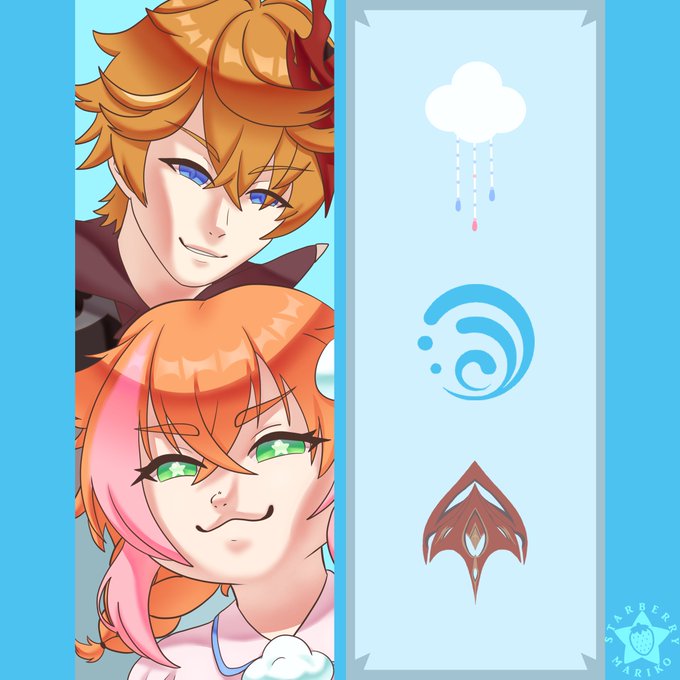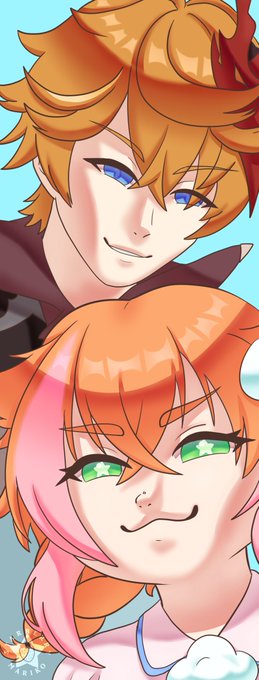 I had to make a cover for a manga of an existing univers (I chose genshin) so I decided to do something with my baby Amarillys! And what's best to present her by her big bro's side's? So yeah, she's Tartaglia's sister (not canon)