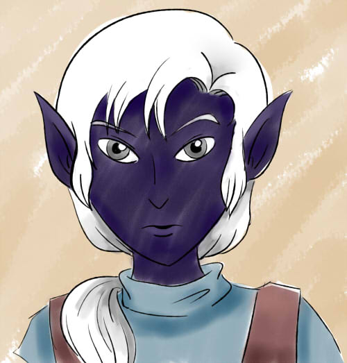 @samdrawsalot He's a 12 year old half-elf warlock. He's shy, skittish and sort of a bookworm. And he's got a sassy troublemaking shadow demon patron living in his head.
