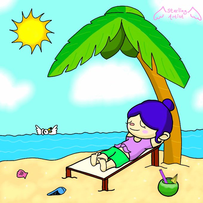 A belated birthday gift for a dear friend of mine - her Animal Crossing character chillaxing on the beach 🏝💕