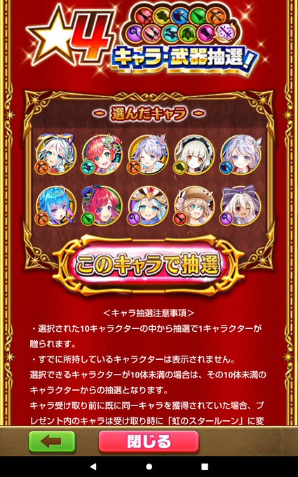 実は困っていたのが火の槍職。これまでは杏子やピーク頑張っていたんだけれど、今回キャラプレでマヤが選べるじゃないか!って事で1番狙いはマヤで、あとはサポート多めと無難に強いのをちょこちょこ選択…。 #白猫