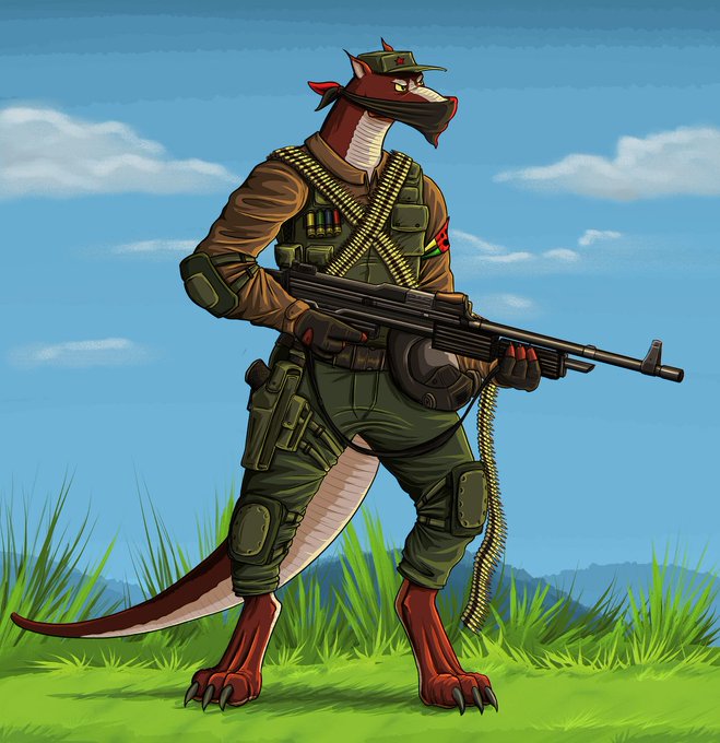 Heres a quick little birthday drawing for @YoungJacobArt of his Shark Bud here as a British SAS soldier instead than his usual American alligance^^