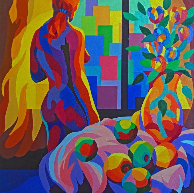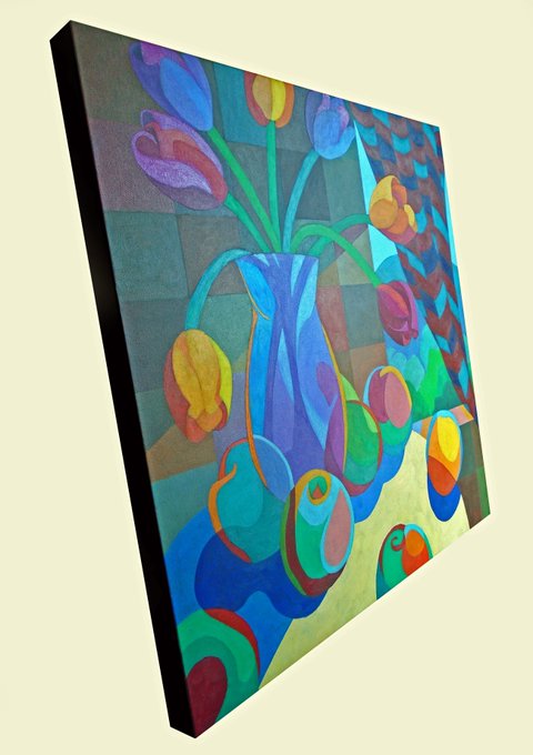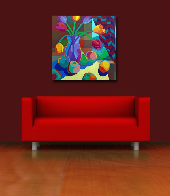 New acrylic painting, 'Still Life: Fruit & Flowers' now available at https://t.co/0TJlZ2PGfX #flora #flowers #tulips #fruits