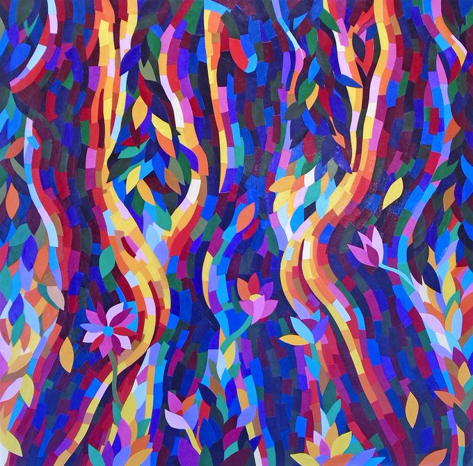 New #papermosaic #artwork 'RHYTHMIC CONTOURS: THREE GRACES' available at https://t.co/TJWoY4M3ll #dancers #nudes #femalenudes #threegraces