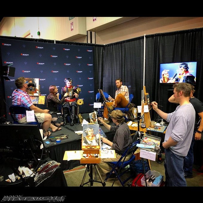 The Gen Con tradition stands strong! Live cosplayer portrait painting with Magic artists with @PastimesGames and @TappyToeClaws as Chandra Nalaar!