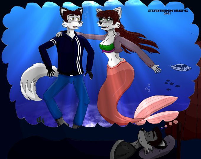 I would also like to say happy Mermay. Here's a pic I drew last month of Steven dreaming that Ellie has become a mer-fox. Indeed, I do have a soft spot for mer-fur's. Also, I know i've used that pic of Steve twice in past tweets but this is image it came from.