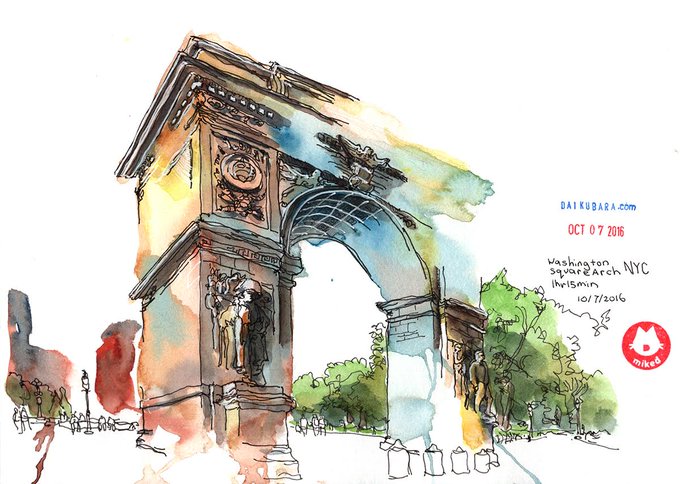 Washington Square Arch by Mike Daikubara. Artist stmnt: https://t.co/wCOHH9ku5M #sketch #sketching #urbansketchers #watercolor #artjournal